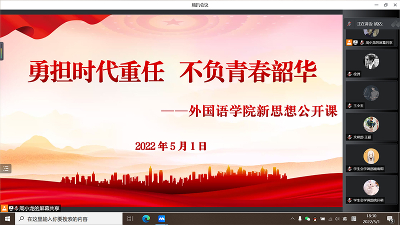 5月1日,304永利以线上方式举办主题为“勇担时代重任 不负青春韶华”的新思想公开课。