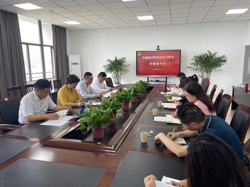 5月21日,我院举行党纪学习教育专题读书班集中学习会,公司党委书记朱小娟主持会议。经理助理杨卫芳、学工办主任王媛媛、公共外语系一部主任陈璇、翻译系主任曹雁华作重点发言。