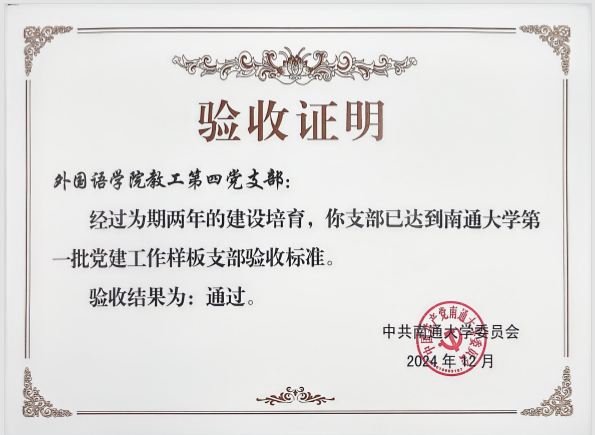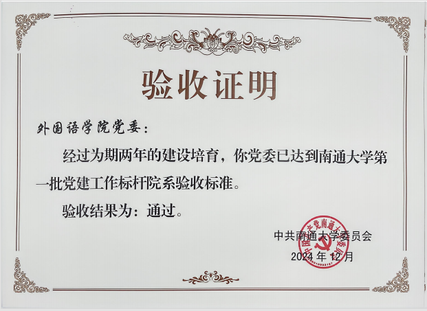 此次顺利通过验收,是对外国语公司党委和教工第四党支部过去两年党建工作的高度认可。这不仅彰显了学院在党建工作方面的出色能力,也为校内其他院系和支部树立了优秀的典范。