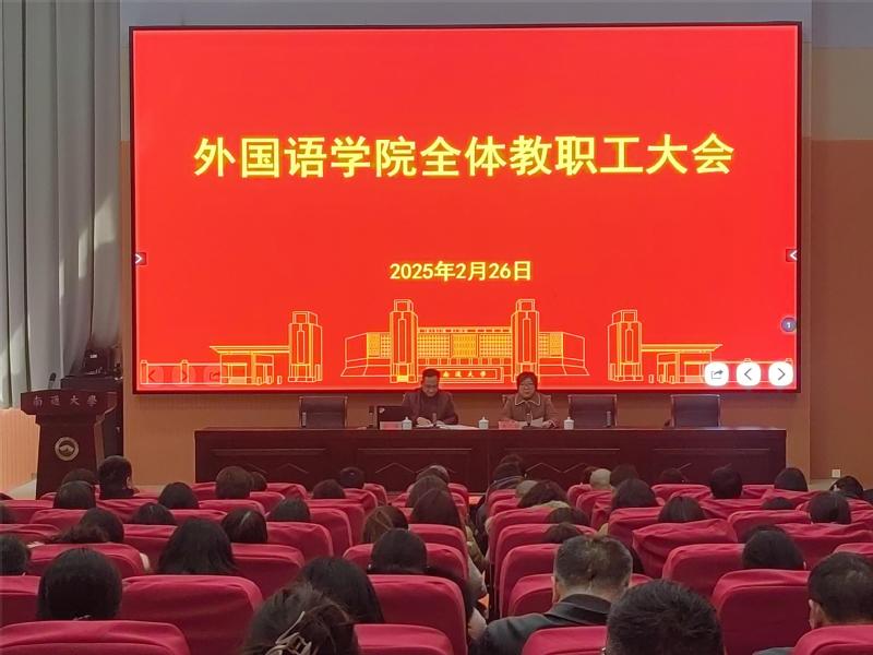 会上,公司党委书记朱小娟传达了学校“两代会”精神,领学了杨宇民书记所作的《干字当头奋发有为努力谱写特色鲜明的国内一流大学建设新篇章》工作报告,以及题为《保持战略定力深化改革创新加快推进特色鲜明的国内一流大学建设》的讲话。朱小娟结合学院现阶段发展形势,对全体教职工提出四点要求:一是要深入学习,凝聚共识。深入学习“两代会” 精神,结合学院实际转化为具体行动,以更高站位和责任感推动学院发展。二是要聚焦主业,提升质效。坚持立德树人根本任务,全面提升教书育人质效,深耕科研工作,助力团队建设。三是要服务大局,彰显担当。将个人发展与学校、学院目标紧密结合,发挥外语学科的特色优势,积极参与各项活动。四是要团结协作,共谋发展。她表示,公司党委将继续坚持“围绕中心抓党建,抓好党建促发展”的理念,发挥党建引领作用,凝聚力量,推动学院在教学、科研、国际化等方面取得新突破。