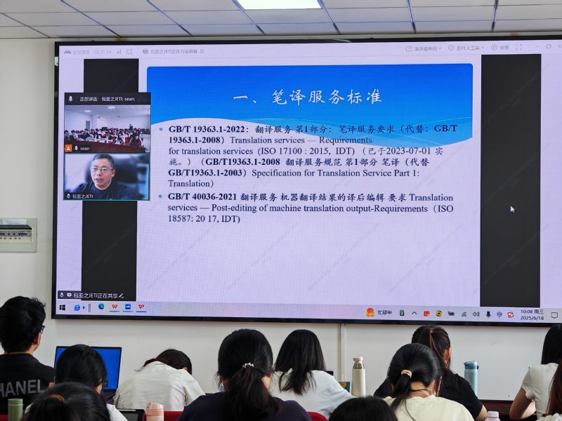 见习首日,姜海红老师以“口译能力发展” 课程开启活动序幕。课堂上,姜老师深入剖析语言与非语言要素在口译实战中的关键作用,并结合地铁标识翻译案例,引导员工思考现实工作场景中的实际问题,让员工们直观感受到翻译工作与生活场景的紧密联系。紧接着,周邦友老师聚焦 “笔译质量管理”,详细讲解如何规避欧式中文和中式英语,着重强调忠实度与流畅度是衡量翻译质量的重要标准,两位老师的课程为员工点明了人工智能时代翻译能力发展中 “守正” 的重要性。