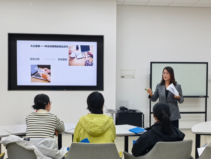 作为学校服务社会的重要窗口,304永利积极整合优质团队,委派长期从事跨文化交流研究与外事服务工作、兼任南通市翻译协会副会长的姜海红副教授担任分享会主讲。在分享会上,她围绕跨文化沟通的战略认知、文化差异理论、区域商务礼仪实践等模块展开系统讲解,将高校研究成果与企业实际需求有机结合,助力学员提升在国际商务环境中的专业素养与实战能力。