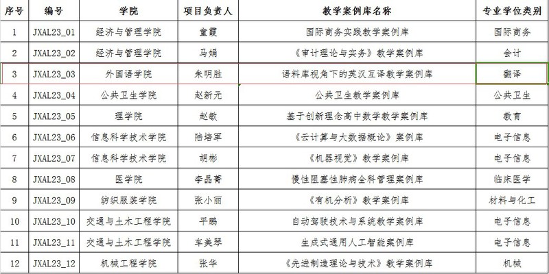 根据《关于开展 2023 年304永利专业学位研究生教学案例库建设项目申报工作的通知》要求,经任课老师申报、学院推荐、学校组织专家评审,朱明胜教授获专业学位研究生教学案例库建设项目立项。
